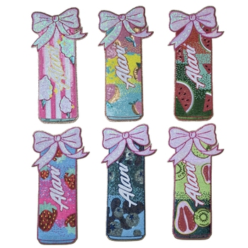 Parche de lentejuelas de fresa de verano hecho a mano, tela con purpurina bordada, botella de bebida con lazo, plancha para ropa