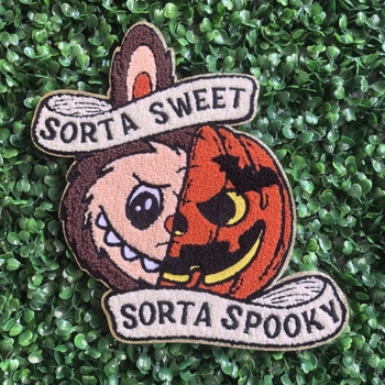 Halloween Sorta Sweet Sorta Spooky Labubu Chenille bordado grande hierro en parches para ropa